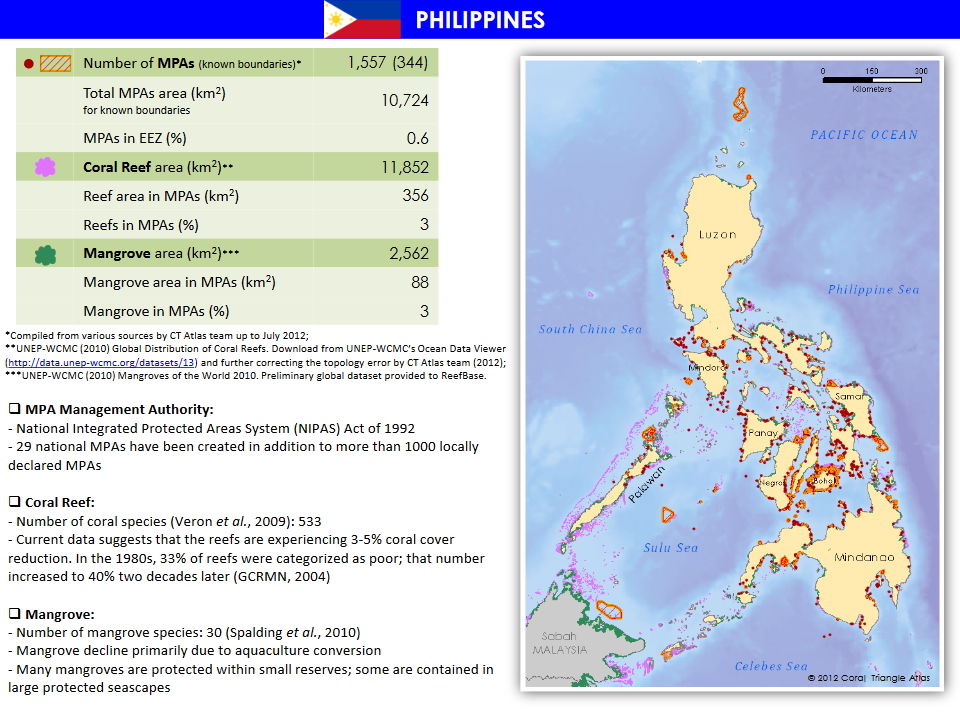 As of 2012, the Philippines has over 1,500 marine protected areas (MSN-MSI Unpublished Database).